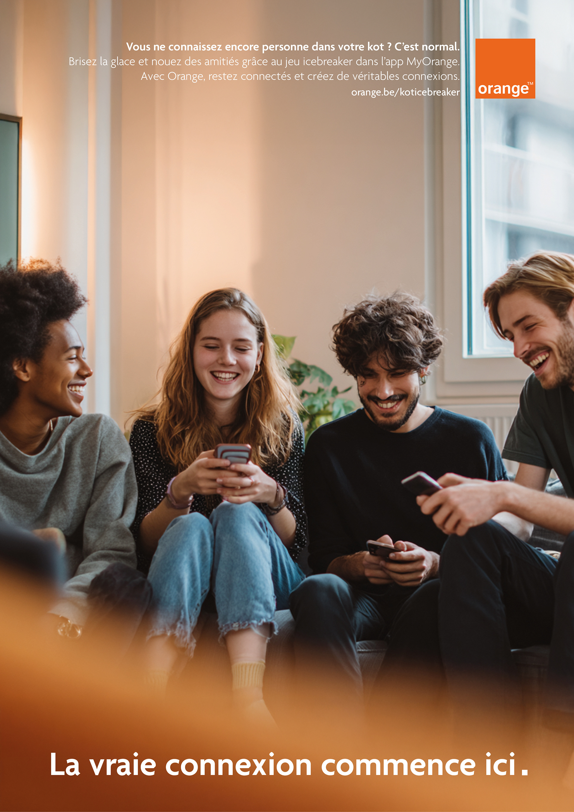 But : Promouvoir Orange My Comfort comme la solution Internet la plus fiable dans les colocations, en montrant que chaque coin du kot bénéficie d’une connexion stable, rapide et sans zones mortes, pour que les jeunes puissent rester connectés où qu’ils soient.